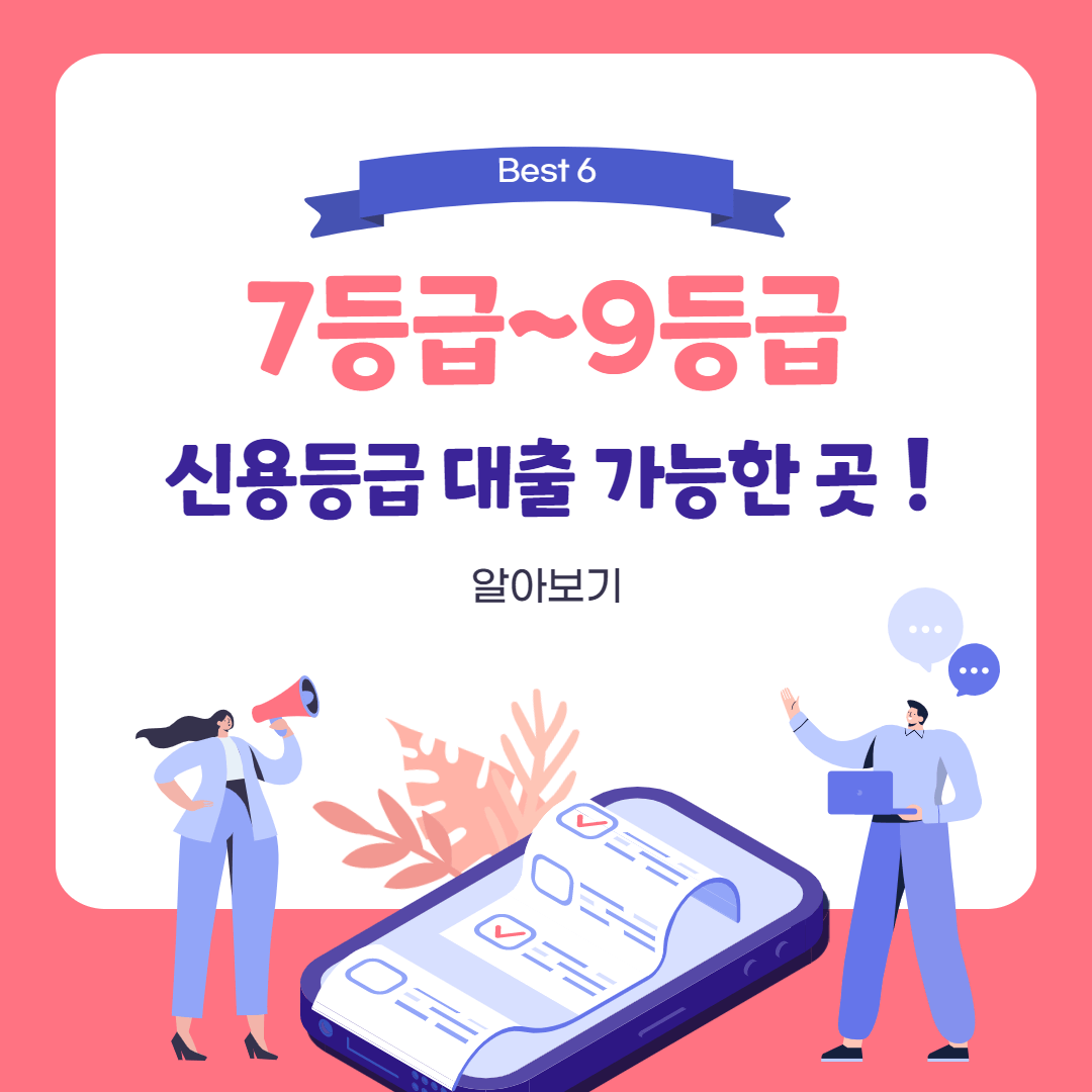 따라서, 본인이 신용등급이 낮아서 대출을 고민하고 있다면 7등급 8등급 9등급 신용대출 가능한 곳 TOP 6 을 통해 알아보신 후 본인에게 필요한 자금을 마련해보시기 바랍니다.